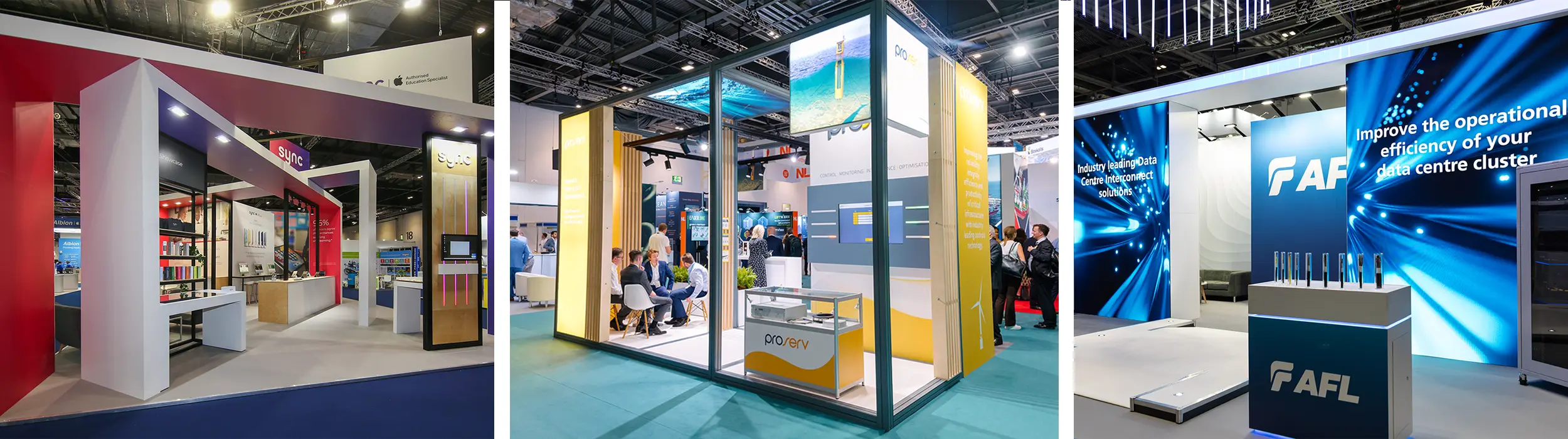 Our bespoke exhibition stand designs take all this into account. We’ll assess ceiling height, stand size, and surrounding ambient light to ensure optimal visibility. We’ll also avoid common pitfalls like harsh glare, mismatched colour temperatures, over-lighting, or dark corners that break the user experience.