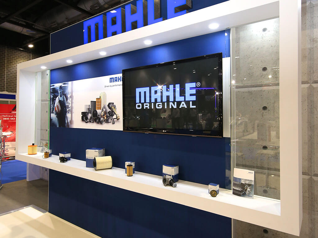 For high-end textures why not try 3D sculptured patterns, such as that featured on Bibby’s welcome desk in the example above, which brought a luxurious quality to the brand’s furniture. Great when you want to communicate the quality of your service or product to your potential customers. Our second example from Mahle shows how adding texture to your stand doesn’t need such a premium price tag. We achieved the impact of the concrete effect by printing directly onto fabric.