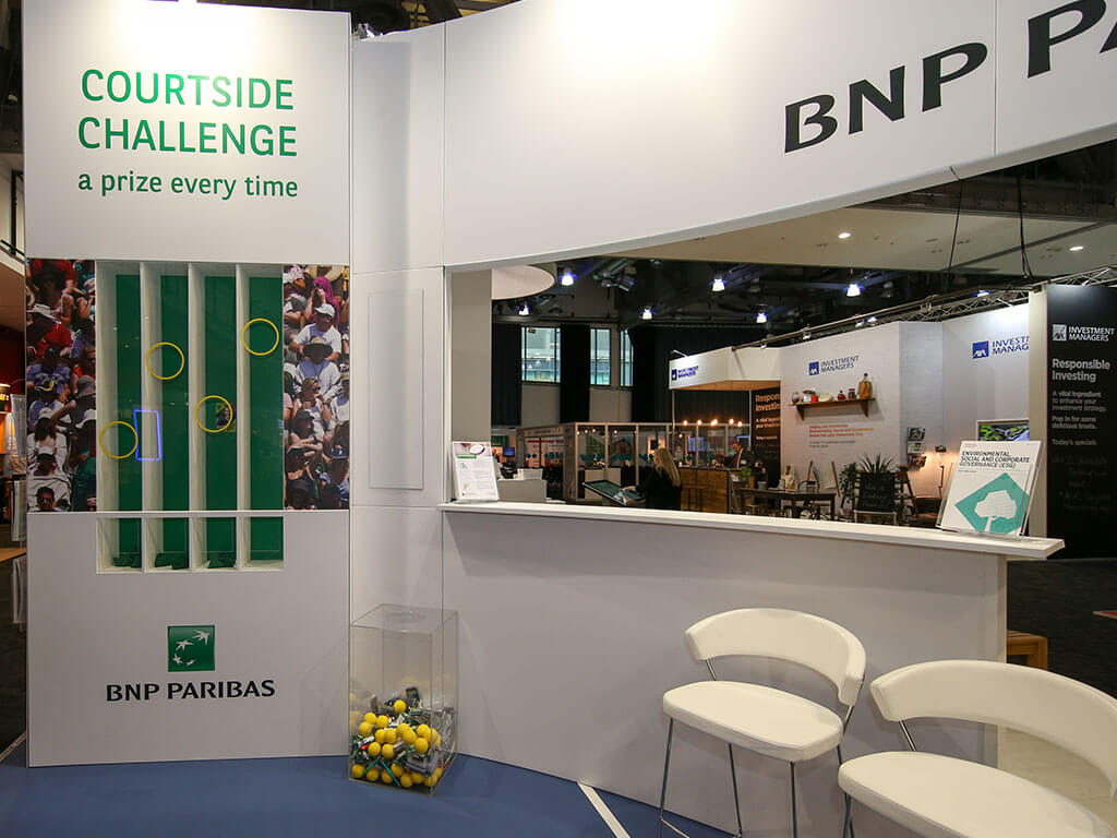 The stand needed to represent two sides of the business and give equal visibility to both. BNP wanted to incorporate engagement on to their stand to assist with lead generation and data capture, but in a fun, competitive way.