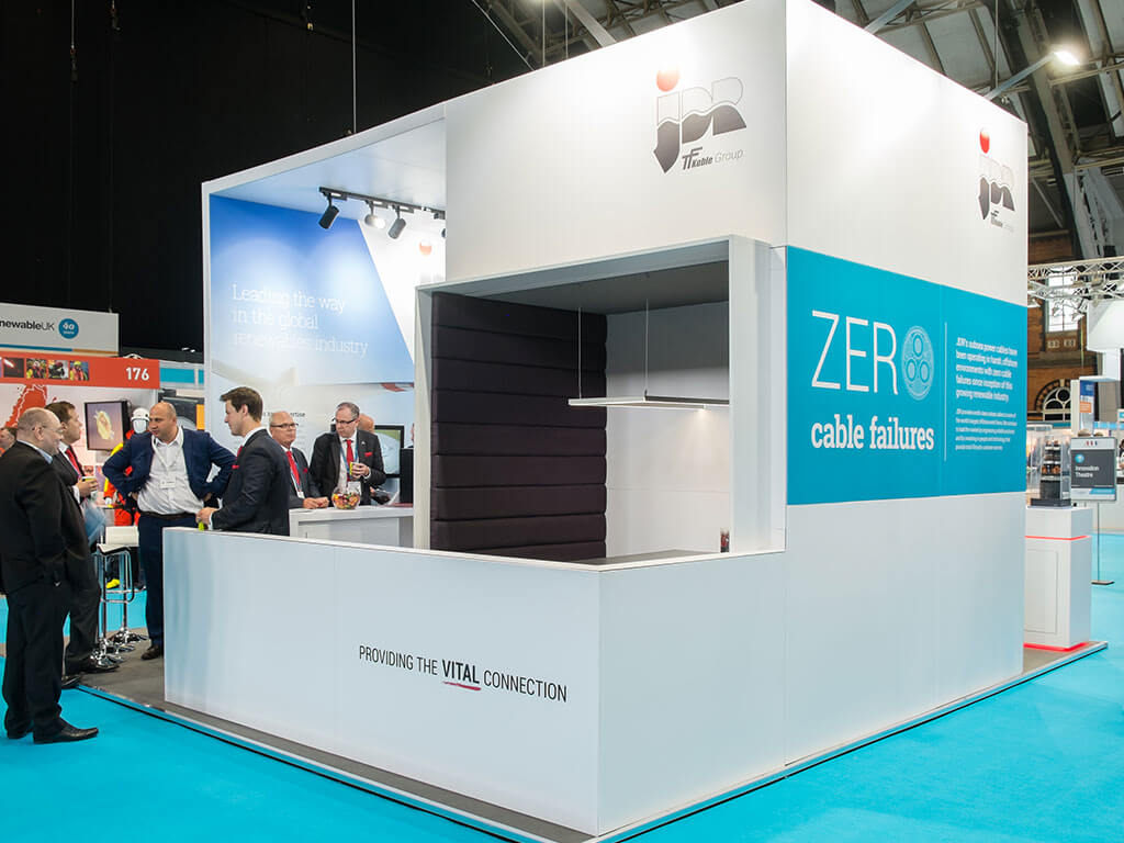 The JDR marketing team were disappointed and had contacted the show organisers who put them in touch with Nimlok. JDR had never considered hiring an exhibition stand as they felt it might compromise their design ambitions. The brief they submitted detailed how they wanted to convey their brand message of ‘no cable failures ever’ with interesting graphic design whilst facilitating both pre-booked and drop-in meetings.