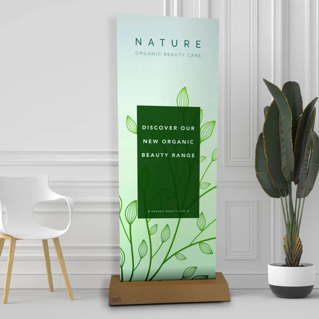 Made solely from paper and cardboard, our eco-friendly roller banner offers a sustainable option for your signage requirements.