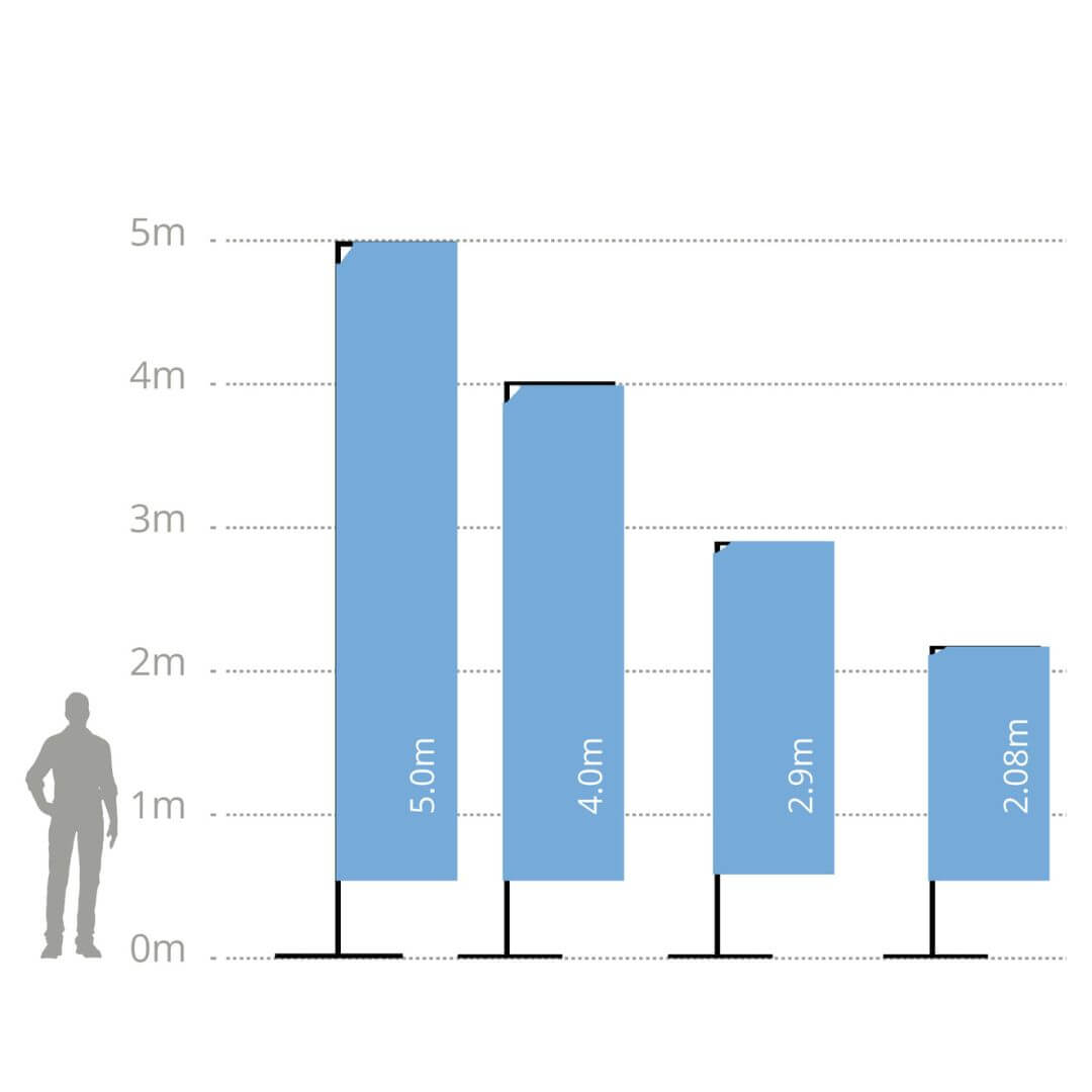 Offered in four sizes – Small (2m), Medium (2.9m), Large (4m), and Extra Large (5m) – the Edge Rectangular Flag is simple to assemble without tools and provides excellent wind resistance, making it an ideal choice for event signage, forecourt flags, and promotional displays.